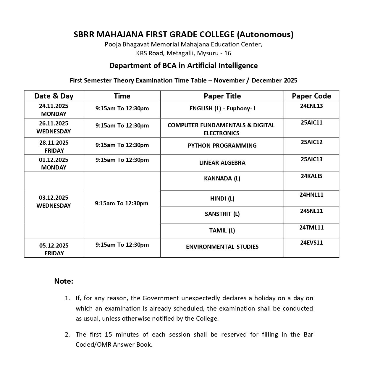 (Affiliated to University of Mysore, Approved by AICTE, New Delhi)